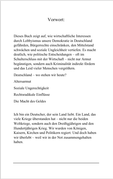 Menschlichkeit statt Machtspiele ein Weckruf für alle, die sich um die Zukunft der Demokratie in Deutschland sorgen. Jens Wesling zeigt anhand zahlreicher Beispiele und fundierter Analysen, wie wirtschaftliche Interessen und Lobbyismus politische Entscheidungen beeinflussen, soziale Ungleichheit vertiefen und den Mittelstand schwächen. Er beleuchtet, wie Gesetze oft im Schulterschluss von Politik und Wirtschaft entstehen – nicht zum Wohl der Bürger, sondern zugunsten von Konzernen.